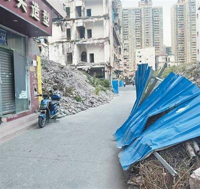 我们是盛景家园小区居民。小区旁边沥滘村拆迁工程2025年1月暂停,产生的建筑垃圾至今仍堆在沥滘地铁站F出口通往盛景家园的路边。这些建筑垃圾本来是用蓝色铁皮围挡起来,但因为堆积时间过长且无人维护,很多铁皮已经损坏,不仅失去防护作用,还存在刮伤行人的风险(见图)。而且不少建筑垃圾滑漏在道路上,沙石四处散落,道路凹凸不平。每逢降雨,路边泥泞不堪。此外,附近路灯也因为拆迁工程长期停用,夜晚一片漆黑,行人容易被路面碎石、坑洼绊倒。希望有关部门尽快推进拆迁工程,如暂时无法重启,至少对铁皮围挡和损坏的路面进行修复,同时恢复路灯的电力供应,消除安全隐患。